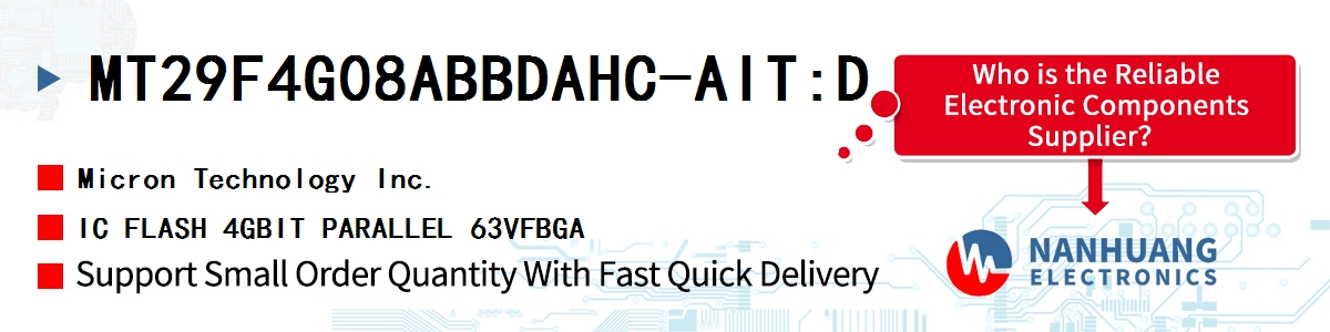 MT29F4G08ABBDAHC-AIT:D, Micron authentic parts in stock from Micron authorized distributors, order today, can ship immediately.
