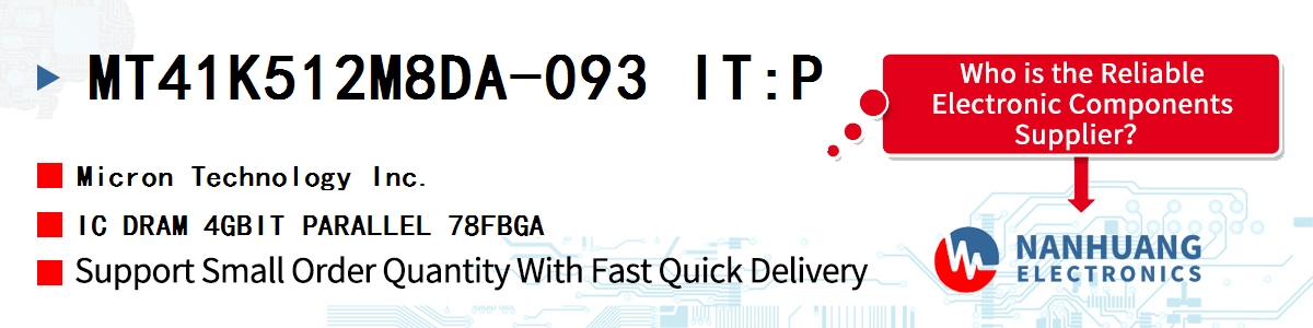 MT41K512M8DA-093 IT:P, Micron authentic parts in stock from Micron authorized distributors, order today, can ship immediately.