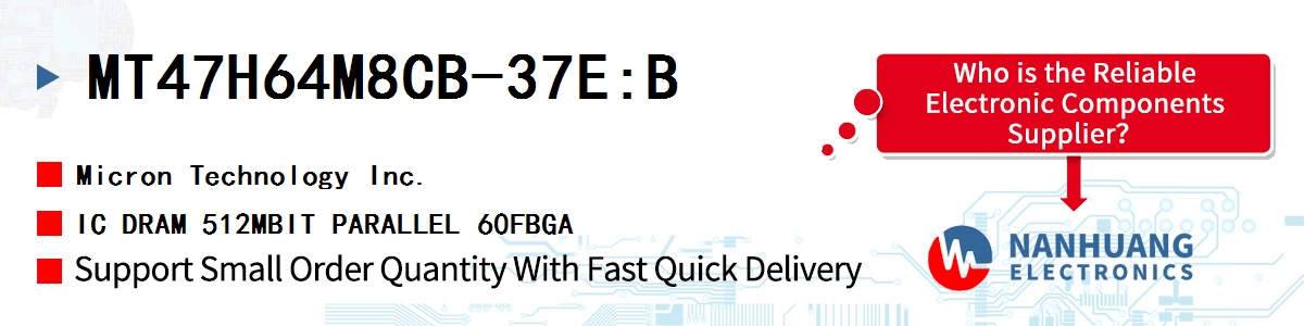 MT47H64M8CB-37E:B, Micron authentic parts in stock from Micron authorized distributors, order today, can ship immediately.
